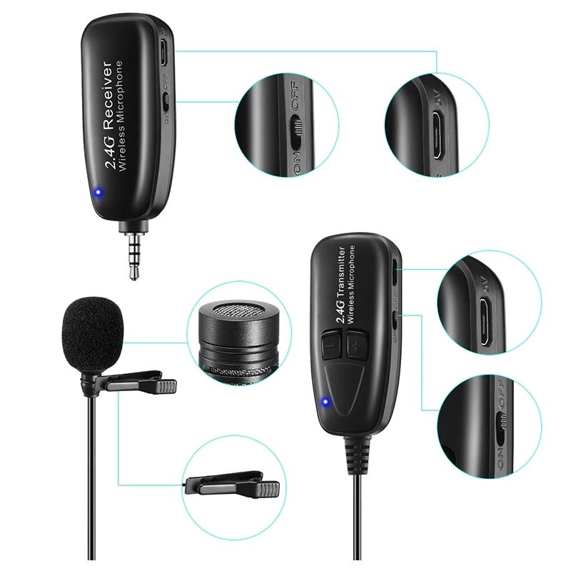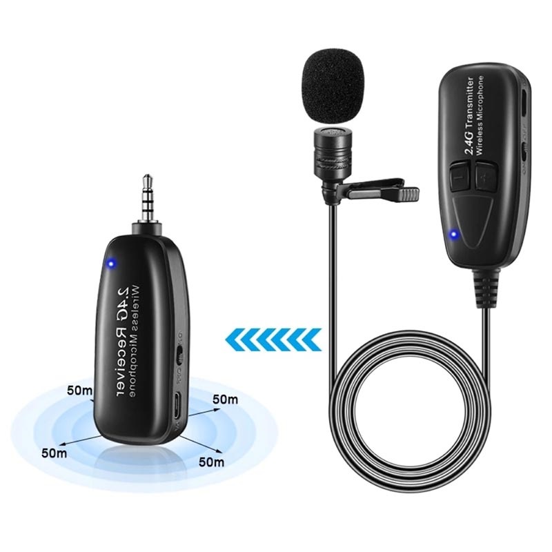 Dieses hochwertige kabellose Lavalier-Ansteckmikrofon verfügt über einen Sender mit Kondensatormikrofon und einen 3,5 mm / Drahtlosempfänger, so dass Sie Ihre Stimme aus bis zu 50 m Entfernung übertragen können. Verbinden Sie den drahtlosen Empfänger mit Ihren Lautsprechern, Ihrer Bus-Stereoanlage, Ihrem Telefon, Tablet, PC oder jedem anderen Gerät mit einem 3,5-mm- oder 6,35-mm-Audioeingang.
