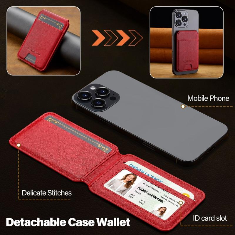 Der magnetische Kartenhalter von LC.IMEEKE ist ein schlankes und elegantes Handy-Accessoire, das die sichere Aufbewahrung von Karten mit dem Komfort des Alltags verbindet. Es wird magnetisch an kompatiblen Handys befestigt und hält Ihre wichtigen Karten in der Nähe, während es ein leichtes Profil beibehält. Mit einem verstellbaren Ständer für freihändiges Betrachten und integriertem RFID-Schutz ist dieses Portemonnaie ideal für den täglichen Gebrauch - egal ob Sie pendeln, reisen oder zu Hause entspannen.