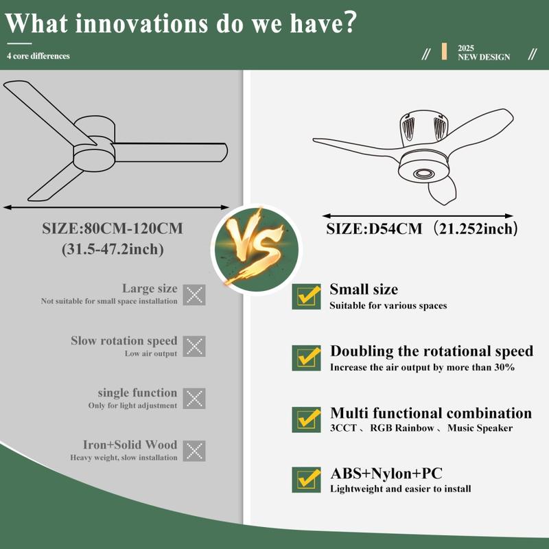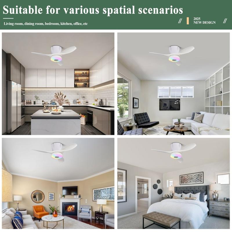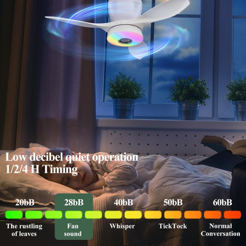 • LEC016R Deckenventilator-Licht - RGB-Stimmung, leiser Luftstrom und integrierter Bluetooth-Lautsprecher