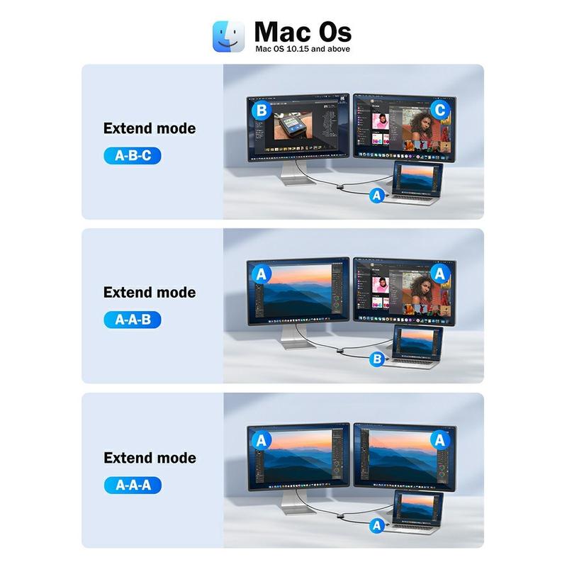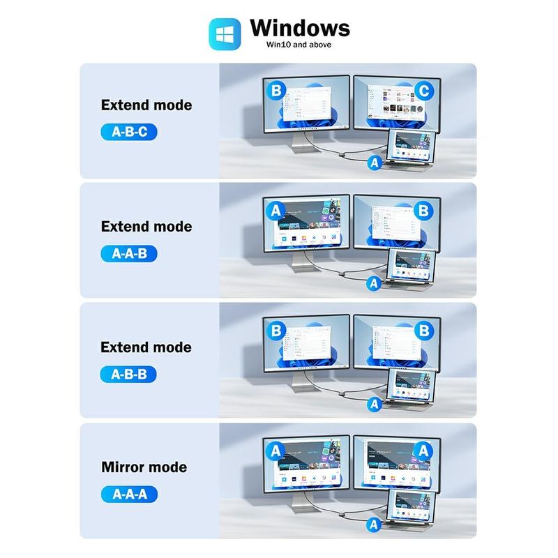 Dieser Adapter verfügt über zwei HDMI-Ausgänge, die erweiterte und gespiegelte Anzeigemodi unterstützen. Ein Anschluss unterstützt 4K-Auflösung bei 30 Hz (über den TUTULINK-Treiber), während der zweite 1080P Full HD liefert, was flexible Anzeigekombinationen für Arbeit, Präsentationen oder Unterhaltung ermöglicht.