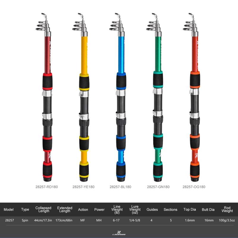 LEO 28257 1.73m Teleskop-Fiberglas-Angelrute - Ultraleichte Mini-Reiserute