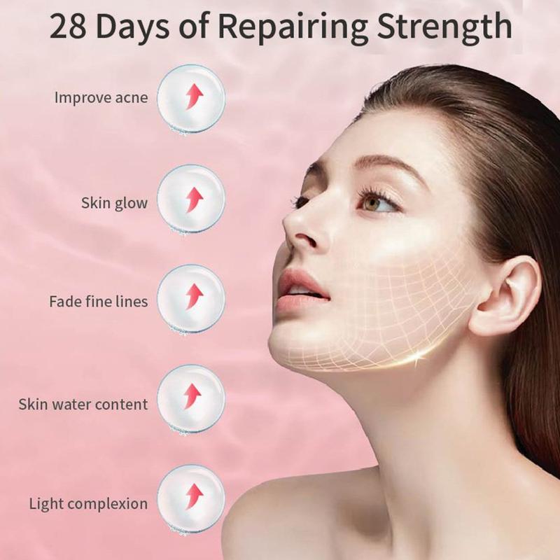 - 7-Farben-LED-Therapie - Enthält rotes (630nm), blaues (460nm), grünes (515nm), violettes, gelb-oranges, cyanfarbenes und weißes Licht, um verschiedene Hautprobleme anzugehen.