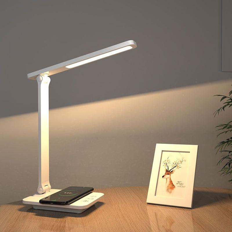 Wir stellen unsere neueste LED-Schreibtischlampe vor, eine perfekte Kombination aus Eleganz und Spitzentechnologie. Diese Lampe wurde mit Blick auf den modernen Berufstätigen entwickelt und bietet sowohl Stil als auch Funktionalität. Das schlanke Design und die integrierte kabellose Ladefunktion und Handyhalterung machen sie zu einem unverzichtbaren Accessoire für jeden Schreibtisch.