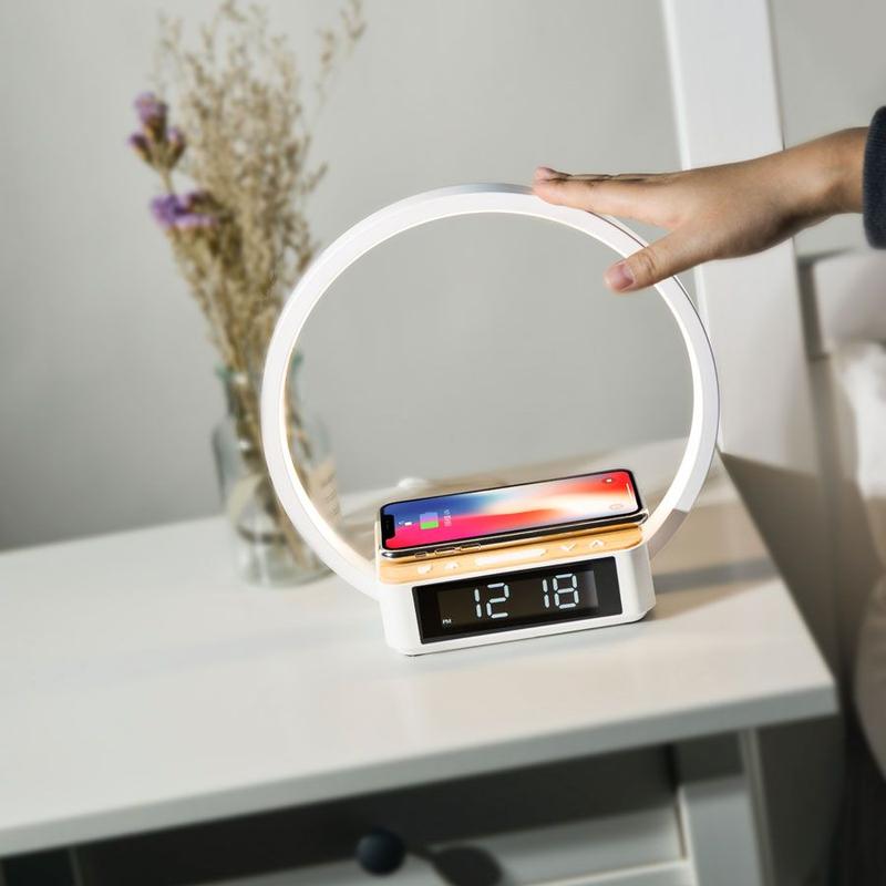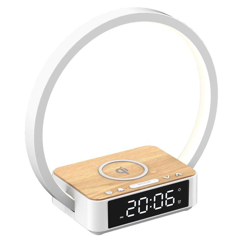 • Lippa Nachttischlampe mit drahtloser Aufladung und Wecker - 5W
