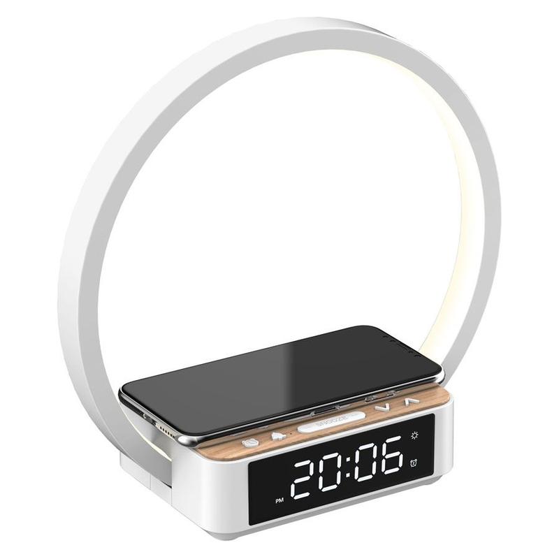 Lippa Nachttischlampe mit drahtloser Aufladung und Wecker - Weiß