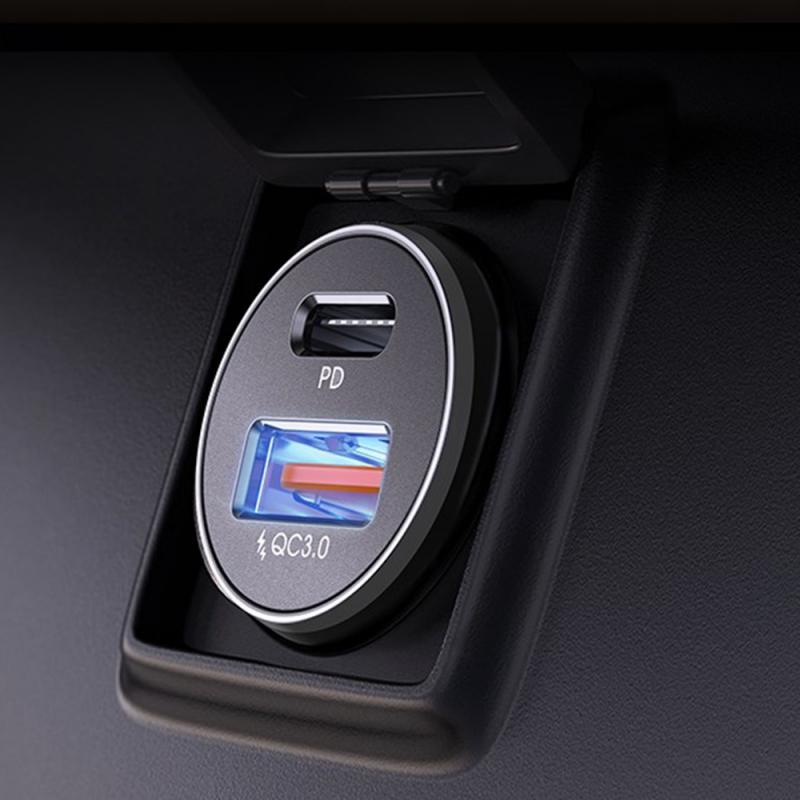 • Lisen 48W Autoladegerät mit USB-C-zu-Lightning-Kabel - USB-C- und USB-A-Anschlüsse, Schnellladung 3 A, Aluminiumlegierung