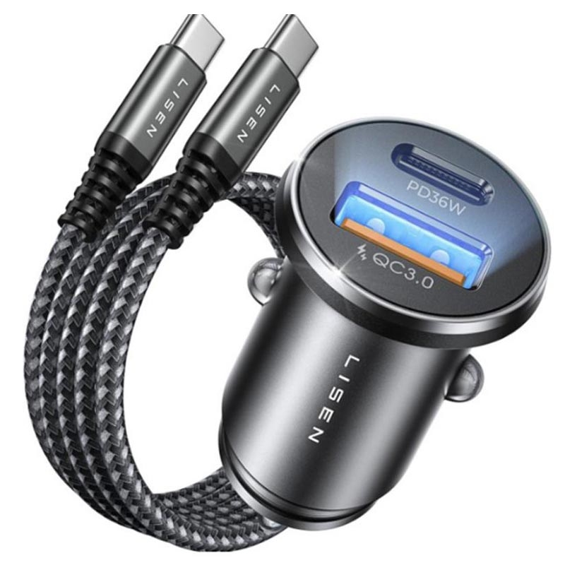 Lisen 51W Autoladegerät mit USB-C-Kabel - 1 x USB-C und 1 x USB-A, Power Delivery, Schnellladung, PPS, Aluminiumlegierung