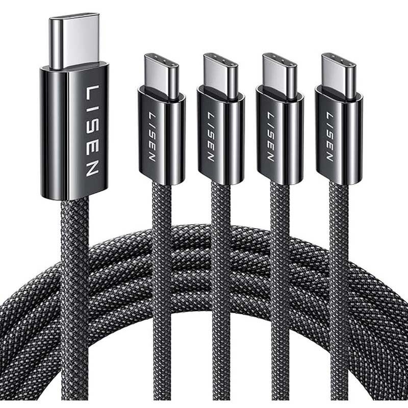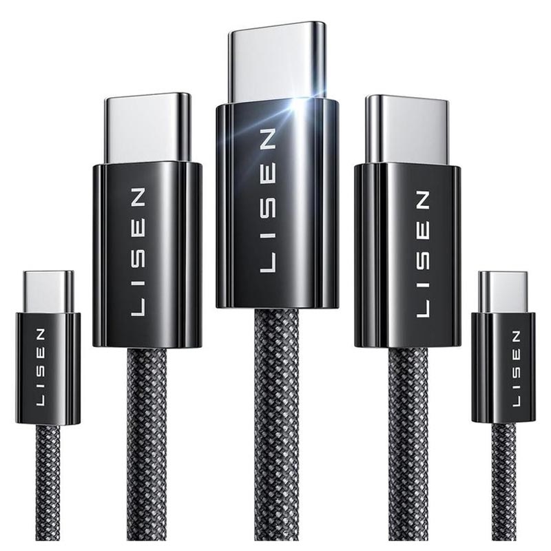 • Lisen USB-C-zu-USB-C-Kabelset - 60W, 3A, Power Delivery Schnellladung, geflochtenes Nylon, verschiedene Längen