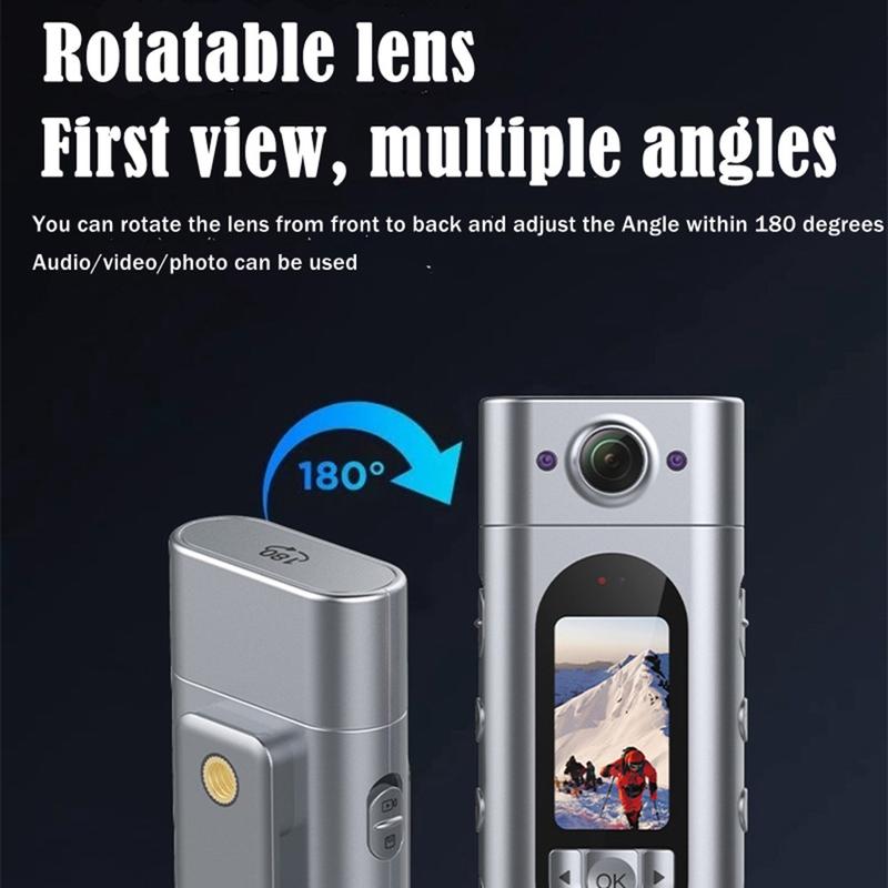 - Um 180° drehbares Objektiv - Einmal drehen für Querformat, ein zweites Mal für Hochformat; perfekt für Fahrradlenker, Helmseiten oder Body-Cam-Ausrichtung.