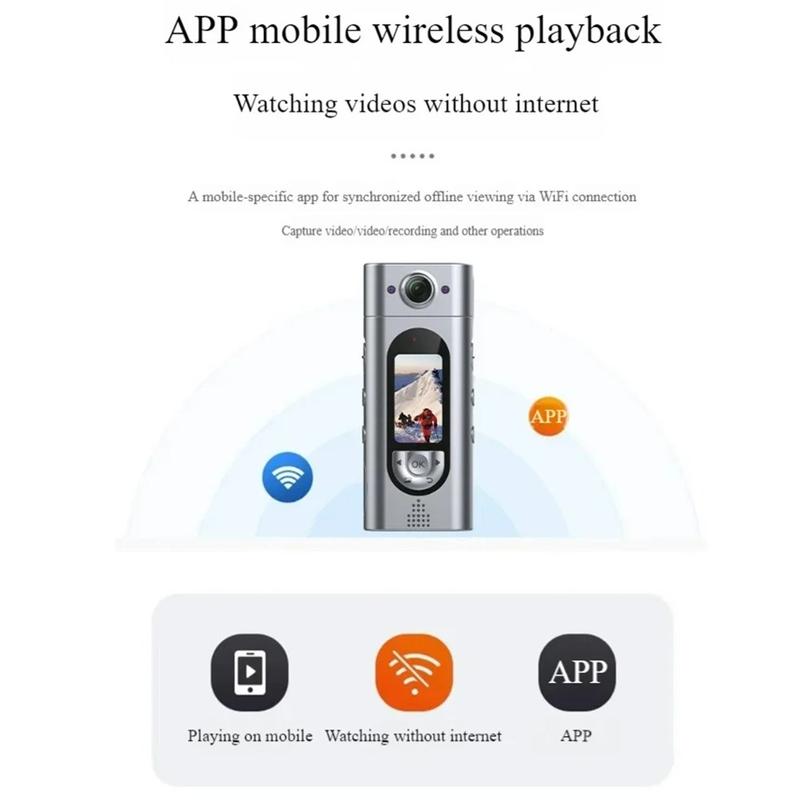 - Ganztägige Mobilität - 600 mAh Li-Ionen-Akku, der über Typ-C aufgeladen wird; ausreichend für ca. 90 Minuten ununterbrochene 4K-Aufnahmen (variiert je nach Temperatur und WiFi-Nutzung).