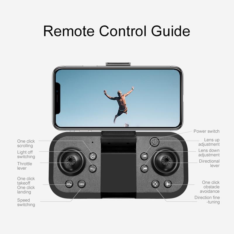 LU600 Faltbare Hindernisvermeidungs-RC-Drohne mit coolem Licht - Schwarz