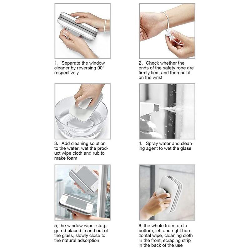 - Zeit- und Kraftersparnis: Reinigt beide Seiten des Glases gleichzeitig, was die Reinigungszeit und den Aufwand reduziert.