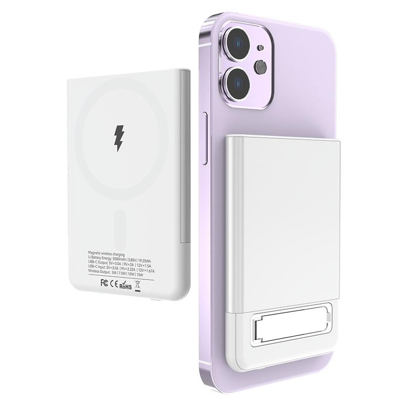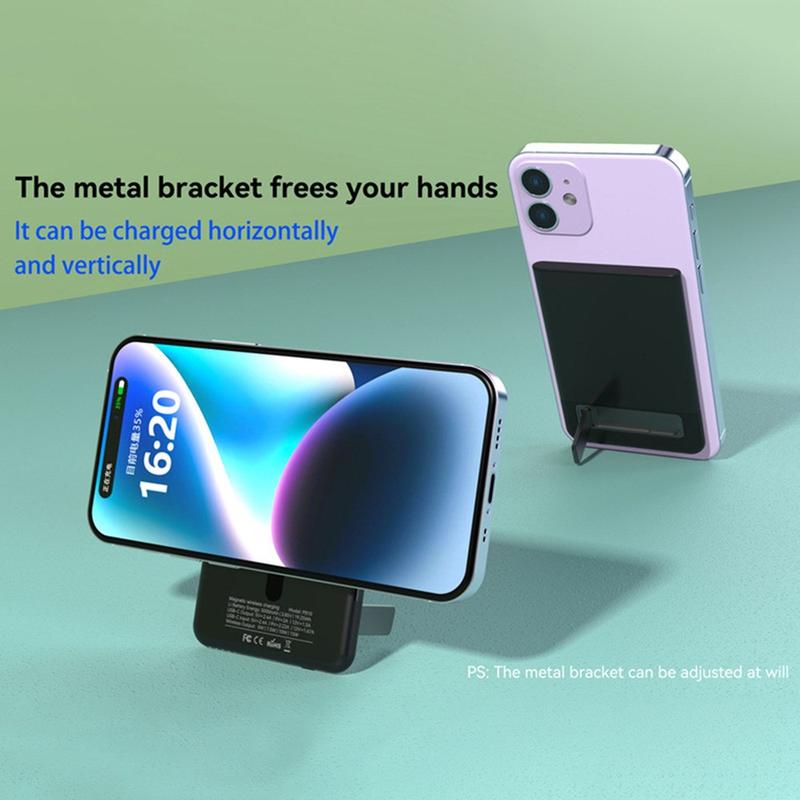 Das Ladegerät verfügt über eine drahtlose Hochgeschwindigkeitsladung mit bis zu 15W, die kompatible Geräte effizient mit Strom versorgt. Außerdem verfügt es über einen eingebauten Ständer, so dass Sie Ihr Gerät beim Aufladen freihändig benutzen können. Mit einer Kapazität von 5000mAh bietet es ausreichend Energie, um Ihre Geräte den ganzen Tag über zu laden. Die 65-Watt-Ladezeit beträgt ca. 1,5 bis 2 Stunden und gewährleistet ein schnelles und effizientes Aufladen. Der wiederaufladbare Li-Polymer-Akku und die fortschrittliche Temperaturregelung machen es zu einer zuverlässigen und vielseitigen Ladelösung für alle Ihre Ladeanforderungen.