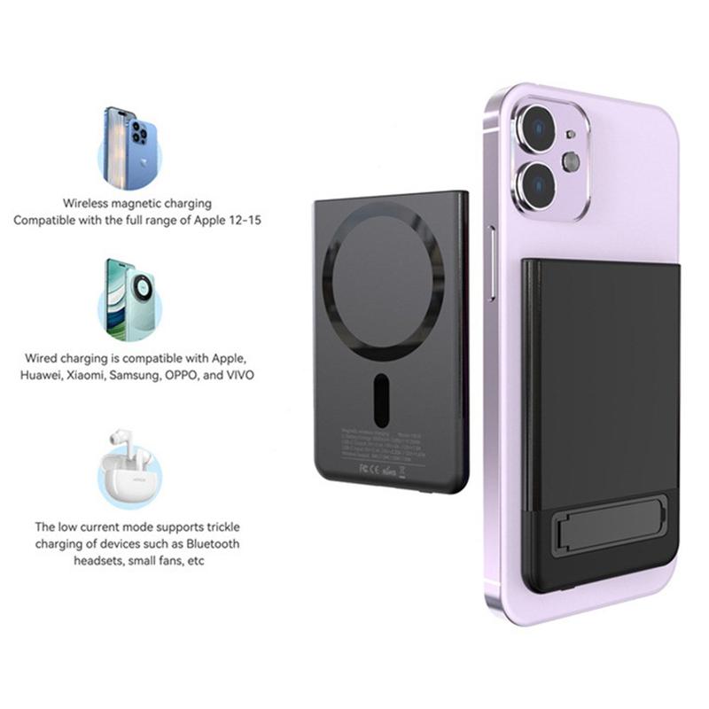 • Ultradünnes drahtloses MagSafe Metall-Ladegerät mit Kickstand für iPhone 12/13/14/15/16/17/Air - 15W/5000mAh