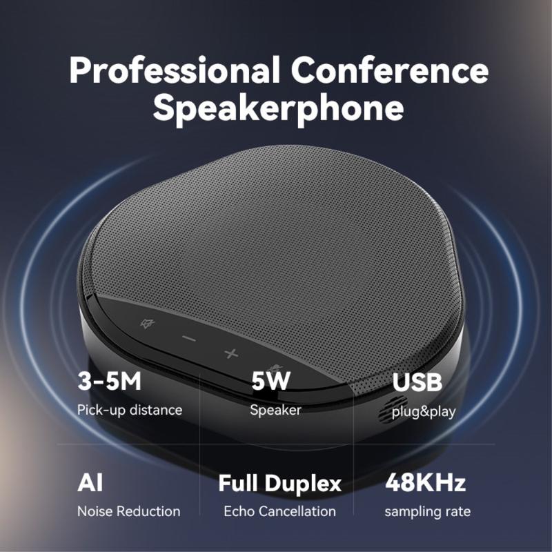 Verfügt über ein Dual-Mikrofon-Array mit 360°-Audioabnahme, ideal für kleine bis mittelgroße Konferenzräume bis zu 20 Quadratmetern