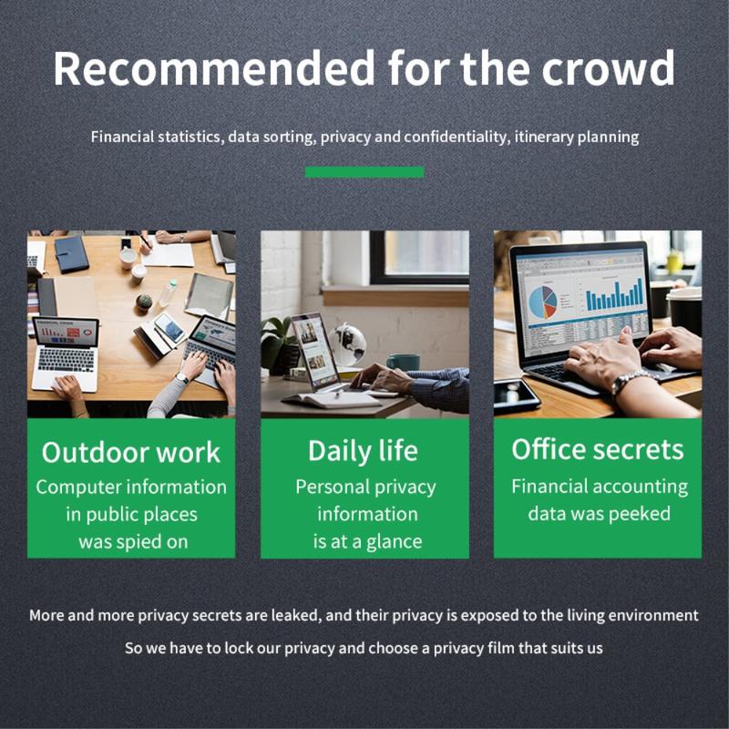 - Sichtschutz, der Bildschirminhalt wird bei engen Winkeln nicht sichtbar sein