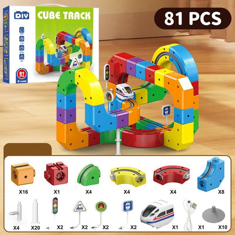 • 81-teiliges Magnetbahn-Set - pädagogisches STEAM-Bauspielzeug mit wiederaufladbarem Mini-Zug