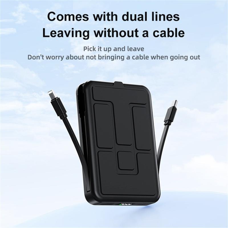 Halten Sie jedes Gerät in Zügen, Flugzeugen oder auf Wanderungen aufgeladen, ohne nach Steckdosen suchen zu müssen. Das ZKD-01 kombiniert eine hochdichte 10000-mAh-Zelle mit 15W magnetischem, kabellosem Ausgang, zwei integrierten Ladekabeln (USB-C und Lightning) und einem ausklappbaren Tischständer. Halten Sie ein iPhone 12-16 im Hochformat für FaceTime, stellen Sie ein Android-Gerät im Querformat für Filme auf oder laden Sie Tablets, Kameras und Konsolen über die beiden integrierten Kabel auf. Das Multi-Chip-Sicherheitsmanagement schützt vor Überstrom, Kurzschluss und Temperaturspitzen, sodass Sie unbesorgt durch Europa reisen können.
