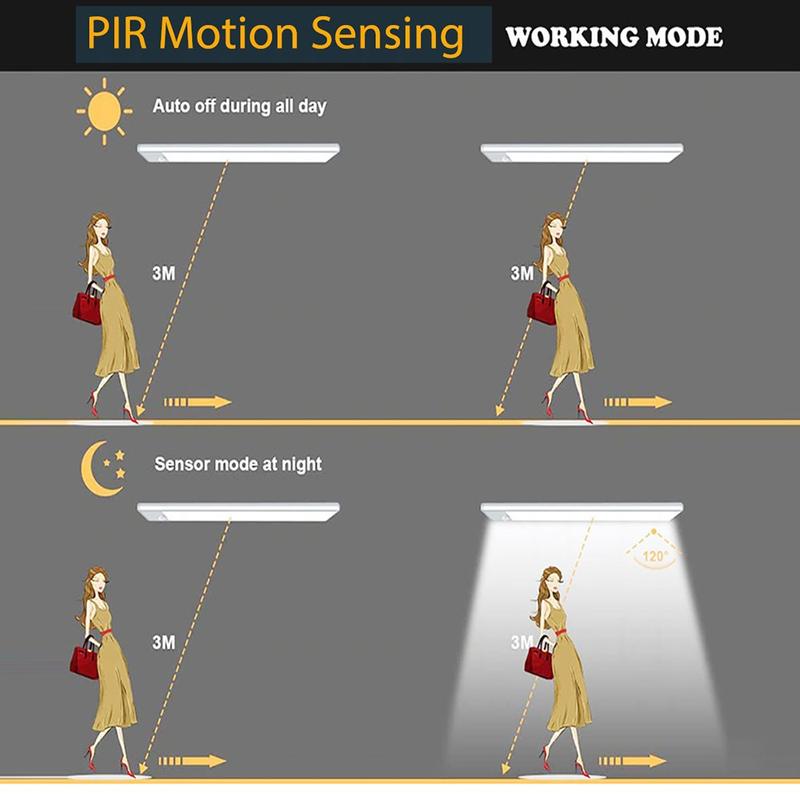 Intelligente, den menschlichen Körper erkennende Beleuchtung + konstanter Beleuchtungsmodus, Helligkeit kann ohne Stangen eingestellt werden