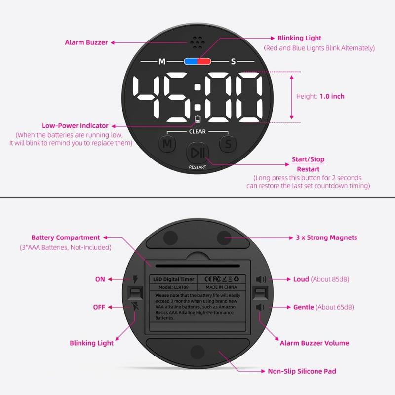 - Die hochfeste magnetische Rückseite und der ausklappbare Ständer bieten flexible Montagemöglichkeiten, wo immer die Zeitmessung benötigt wird