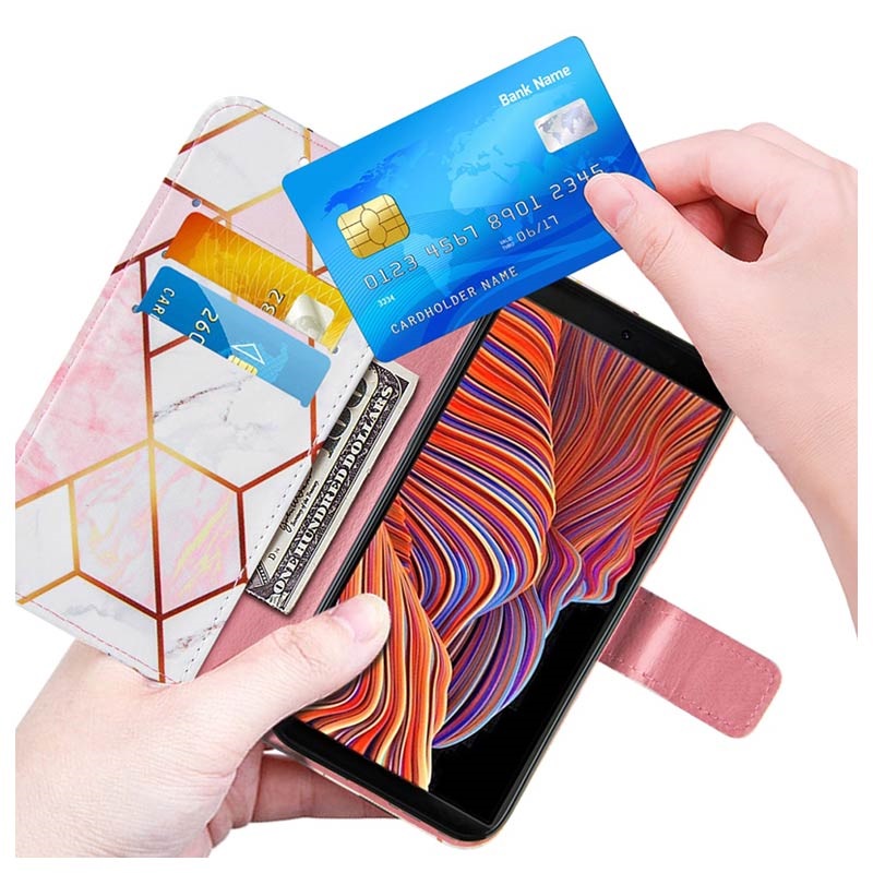 Verschönern Sie Ihr Samsung Galaxy Xcover 5 mit dieser Wallet Hülle mit Musterdruck. Das Marmormuster verleiht Ihrem Samsung Galaxy Xcover 5 ein stilvolles und ausgezeichnetes Aussehen. Darüber hinaus ist diese Hülle sehr schützend und kann in einen Ständer umgewandelt werden. So können Sie Videos sorglos und entspannt anschauen.