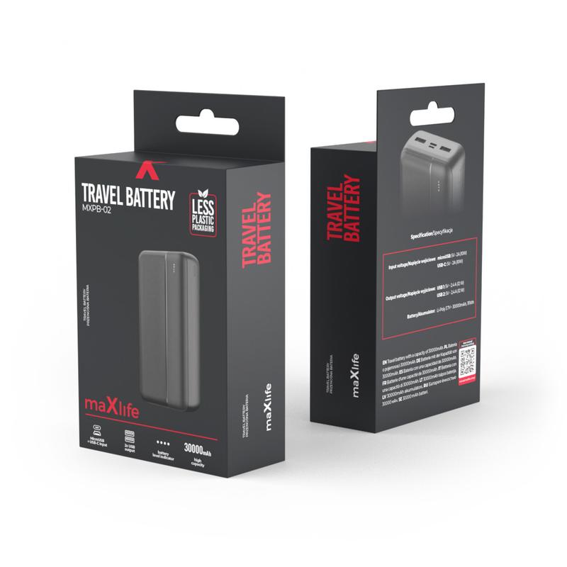 Die MXPB-02 von Maxlife ist eine leistungsstarke und vielseitige Powerbank mit einer Kapazität von 30.000 mAh, die ein langes Aufladen mit 12 W Leistung ermöglicht. Dank der zwei USB-Anschlüsse können zwei Geräte gleichzeitig geladen werden. Die Powerbank verfügt außerdem über Dioden, die den Benutzer über die verbleibende Energie in der Batterie informieren, und ist sowohl über USB-C- als auch über microUSB-Eingänge leicht aufladbar. Ihr minimalistisches Design mit einem zeitlosen schwarzen, matten Finish und einem ästhetischen Panel mit rauer Oberfläche verleiht ihr einen eleganten und modernen Look. Außerdem wird die MXPB-02-Serie in plastikfreien Boxen verkauft, was sie zu einer umweltfreundlichen Wahl macht.