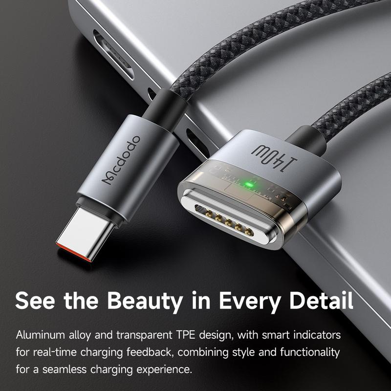 Laden Sie Ihre Geräte schneller und intelligenter mit dem MCDODO CA-207 auf. Mit einer Leistung von 140W bietet dieses Kabel eine gleichmäßige, effiziente Ladung für Ihre Apple-Geräte, einschließlich MacBooks und iPhones, mit dem zusätzlichen Komfort einer magnetischen Ausrichtung für eine sofortige Verbindung.
