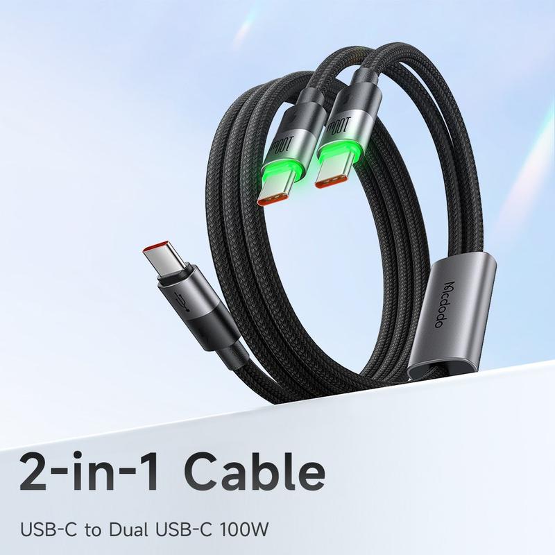 Mcdodo CA-6740 2-in-1 USB-C Kabel mit 100W Schnellladung, LED Licht - 1.5m
