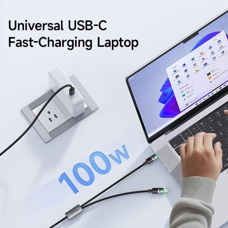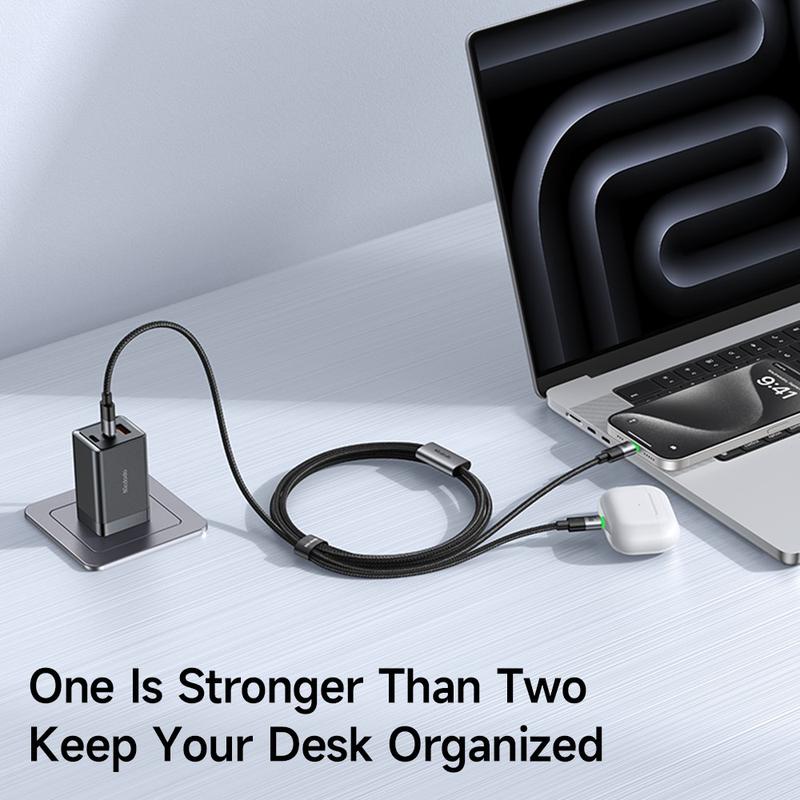 Ein Kabel, das die Arbeit von zwei erledigt, bedeutet weniger Unordnung, weniger vergessenes Zubehör und weniger Elektroschrott. Seine starke 100-Watt-Leistung macht Ihre Einrichtung zukunftssicher für die Laptops der nächsten Generation, während die intelligente Aufteilung die heutigen Geräte schützt. Dank des robusten Geflechts können Sie sich auf jahrelange, zuverlässige Dienste freuen - billiger Ersatz ist nicht nötig.