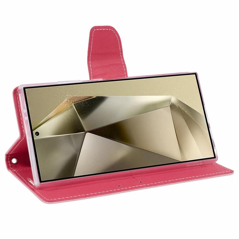 Halten Sie Ihr Samsung Galaxy S24 Ultra geschützt und sicher vor Kratzern und Stößen in diesem hochwertigen Geldbörsen Case von Mercury. Das Mercury Fancy Diary Geldbörsen Case hat einen praktischen integrierten Standhalter, damit Sie Videos angenehm schauen können. Die Kreditkartenfächer dienen zur Aufbewahrung Ihrer Karten oder Ihrem Geld. Das Mercury Goospery Fancy Diary Geldbörsen Case lässt Ihr Samsung Galaxy S24 Ultra schön aussehen.