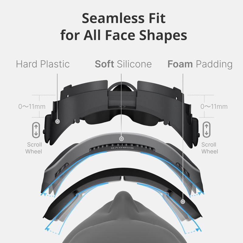 Diese Gesichtsmaske ist mit allen Meta Quest 3 Kopfbändern kompatibel und passt sich nahtlos an Ihr Headset an. Die weiche Silikonpolsterung passt sich natürlich an verschiedene Gesichtsformen an und gewährleistet einen sicheren und bequemen Sitz für jeden Benutzer.
