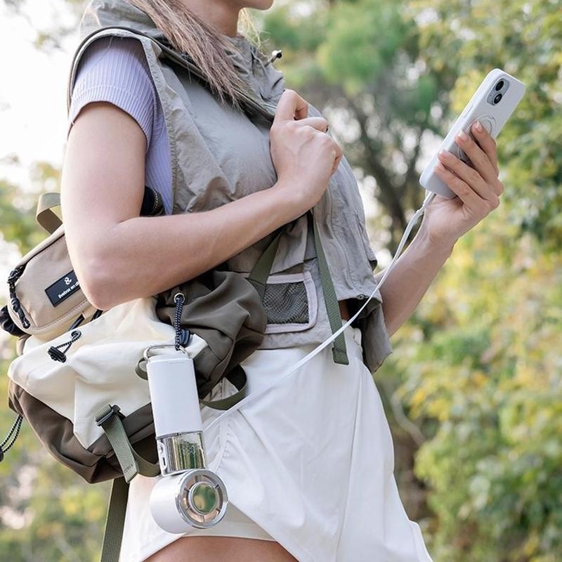 - Befestigen Sie das Schlüsselband an einem Rucksackgurt und kühlen Sie sich auf Spaziergängen ab, ohne ein Kabel zu benötigen
