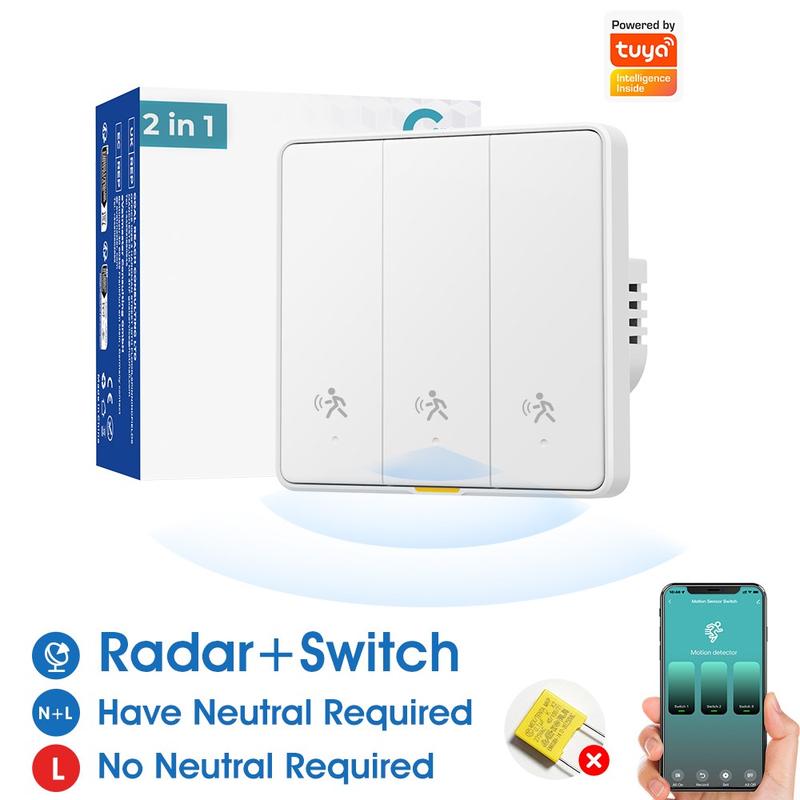 MG-KG126 Zigbee Radar-Smart-Switch / Wandschalter mit Personensensor, Tuya-fähige Fernbedienung - 3 Gang, 1 Weg