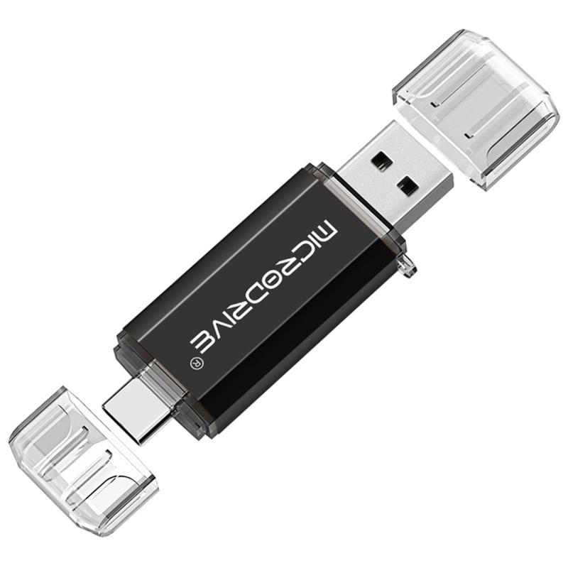 MICRODRIVE 64GB 2-in-1 USB 2.0 / USB-C Flash Drive - Schwarz