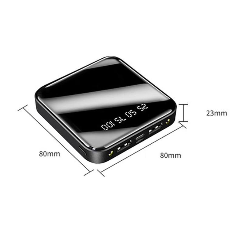 Die Mini-Powerbank ist mit einer Akkukapazität von 20000 mAh und zwei USB-Ausgängen ausgestattet, so dass Sie Ihre Geräte auf Reisen jederzeit nutzen können. Die wichtigsten Merkmale dieses tragbaren Ladegeräts sind seine Größe und Leistung. Dünn und klein, damit es auch in die kleinste Tasche passt.