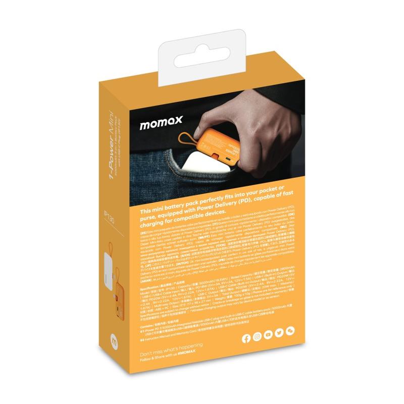Momax 1-Power Mini Pop Art 5000mAh Power Bank / Tragbares Ladegerät mit USB-C Stecker, USB-C Kabel, USB-C Anschluss - 20W