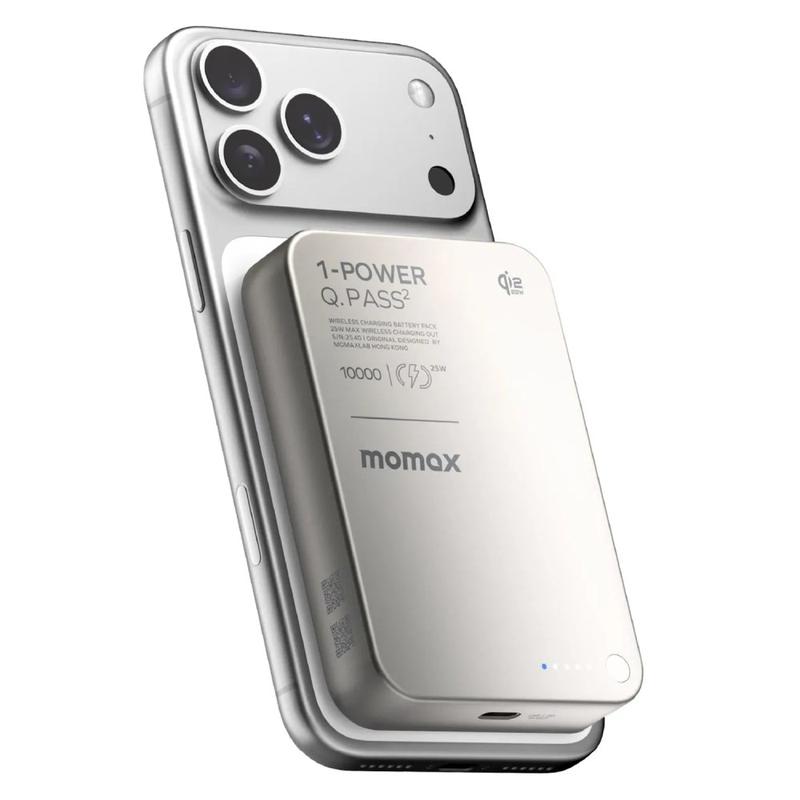 • Momax 1-Power Q.Pass2 Qi2.2 25W Magnetisch Wireless Power Bank 10000mAh - USB-C PD 30W, Snap-On Charging für iPhone 12-17 Serie