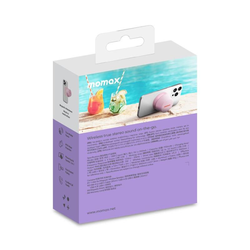 Der magnetische Mini-Bluetooth-Lautsprecher MOMAX 1-Vibe Go BS6 ist eine kompakte, vielseitige Audiolösung für die tägliche Unterhaltung zu Hause oder unterwegs. Sein ultra-mini magnetisches Design kombiniert einen tragbaren kabellosen Lautsprecher mit einem praktischen Handyhalter, sodass Sie Musik, Videos und Anrufe ganz einfach genießen können. Ausgestattet mit einem leistungsstarken 40-mm-Treiber und 360°-Soundausgabe liefert er beeindruckenden Klang in einer überraschend kleinen Form, während die Wasserdichtigkeit nach IPX6 ihn für den täglichen Gebrauch in verschiedenen Umgebungen geeignet macht.