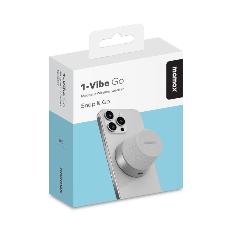 • Momax 1-Vibe Go BS6 Magnetischer Mini-Bluetooth-Lautsprecher and Handyhalter, 360°-Sound and IPX6 wasserdicht