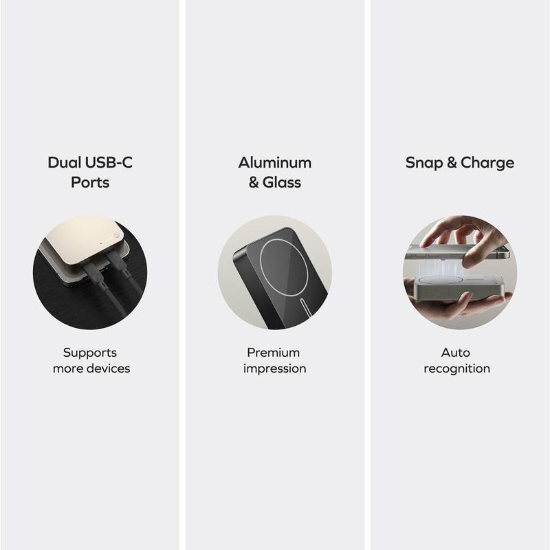 - Duale USB-C Ausgänge + Wireless Charging: Kompatibel mit PD3.0, PPS, QC, FCP und anderen Protokollen.