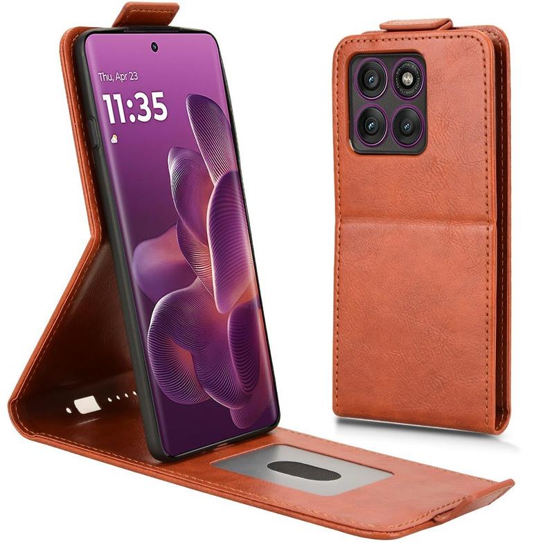Motorola Edge 60 Pro Vertikal Flip Hülle mit Ständer - Braun