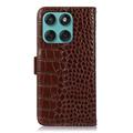 Motorola Edge 60 Fusion Crocodile Serie Lederhülle mit Geldbörse mit RFID - Braun
