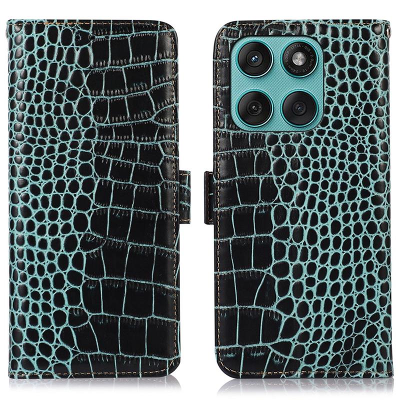 Crocodile Serie Lederhülle mit Geldbörse mit RFID für Motorola Edge 60 Fusion