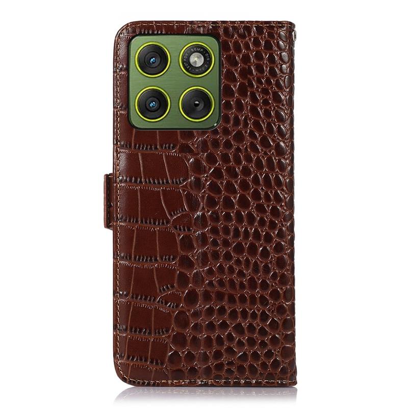 Crocodile Serie Lederhülle mit Geldbörse mit RFID für Motorola Edge 70