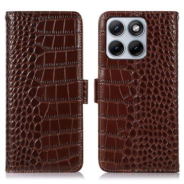 Crocodile Serie Lederhülle mit Geldbörse mit RFID für Motorola Edge 70 Fusion