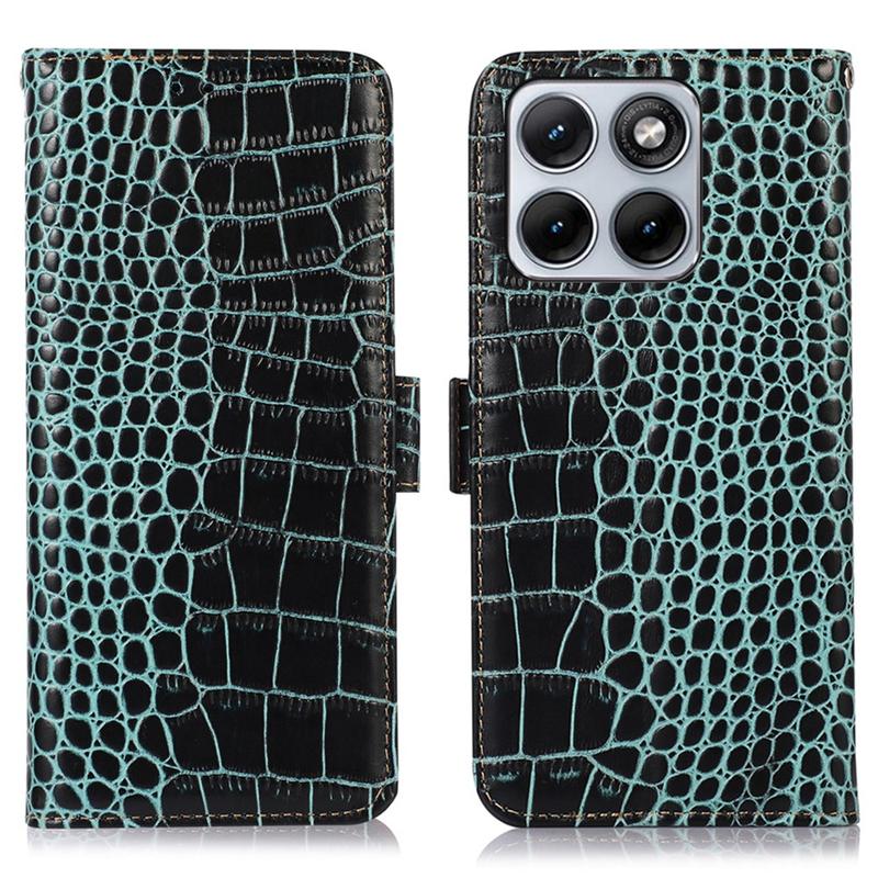 Motorola Edge 70 Fusion Crocodile Serie Lederhülle mit Geldbörse mit RFID - Grün