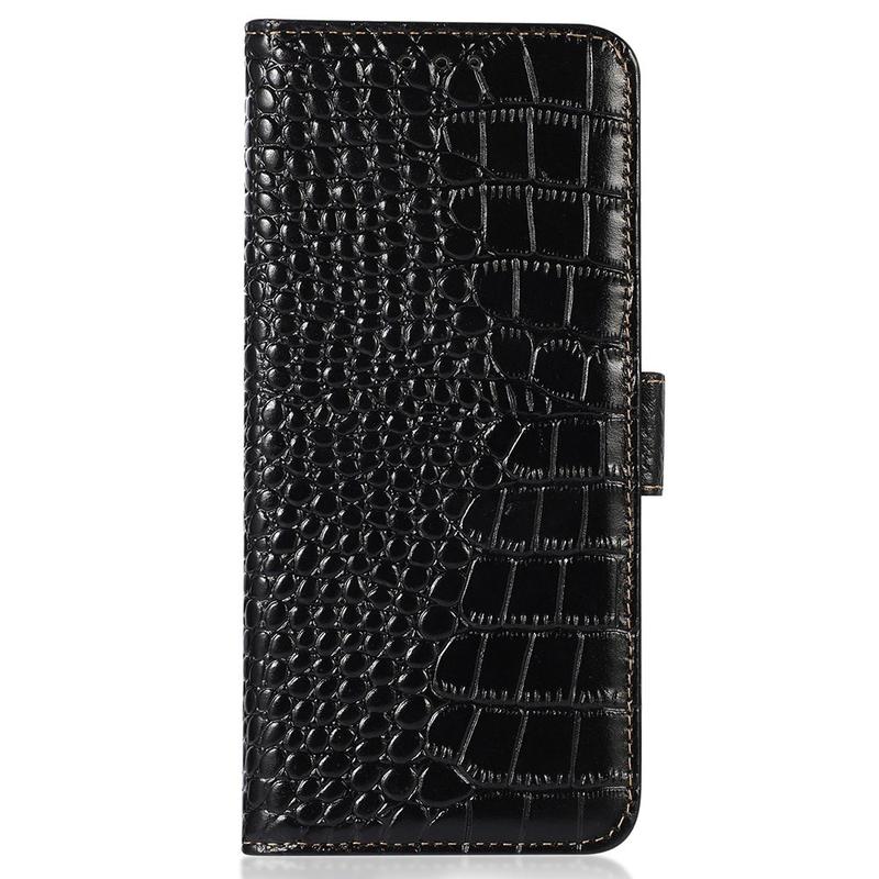 • Crocodile Serie Lederhülle mit Geldbörse mit RFID für Motorola Edge 70 Fusion