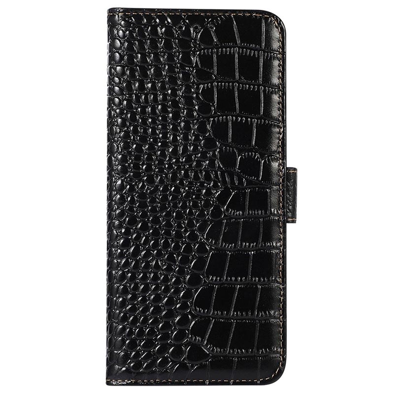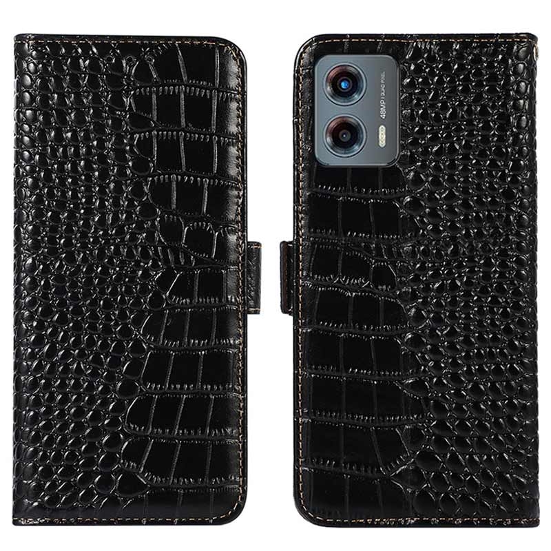 Motorola Moto G (2023) Crocodile Serie Lederhülle mit Geldbörse mit RFID - Schwarz