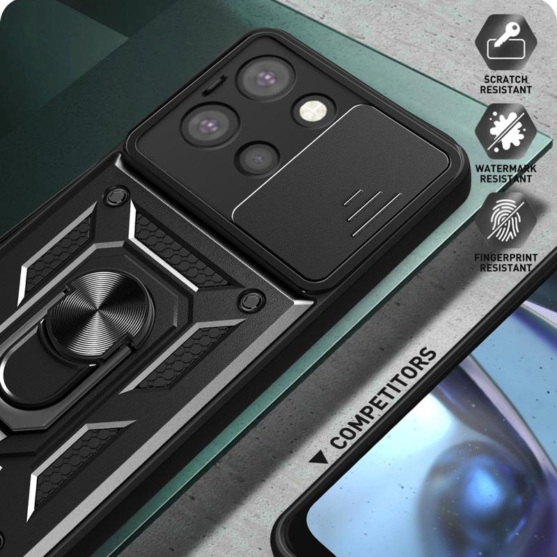 Diese Hülle für das Motorola Moto G (2025) besteht aus hochwertigen Kunststoff-, TPU- und Metallmaterialien und ist auf Langlebigkeit und Schutz ausgelegt. Mit mehreren Funktionen schützt es Ihr Motorola Moto G (2025) perfekt und sorgt dank des Drehrings auf der Rückseite auch für ein angenehmes Bedienen und Ansehen.