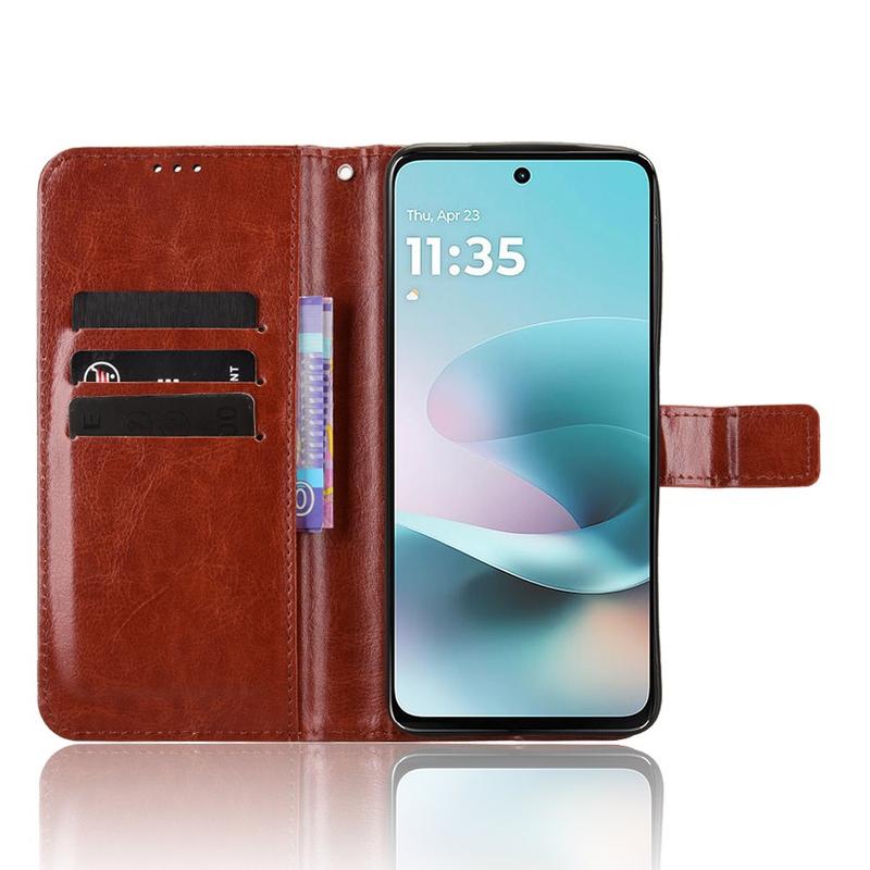 Verleihen Sie Ihrem neuen Motorola Moto G67 Power, Moto G57 Power, Moto G57 einen raffinierten Vintage-Look und ersetzen Sie gleichzeitig Ihr tägliches Portemonnaie. Die Außenseite aus Polyurethan mit Crazy-Horse-Struktur und die stoßdämpfende TPU-Schale schützen vor Stürzen und Kratzern, während clevere Fächer für Karten und Bargeld sorgen.